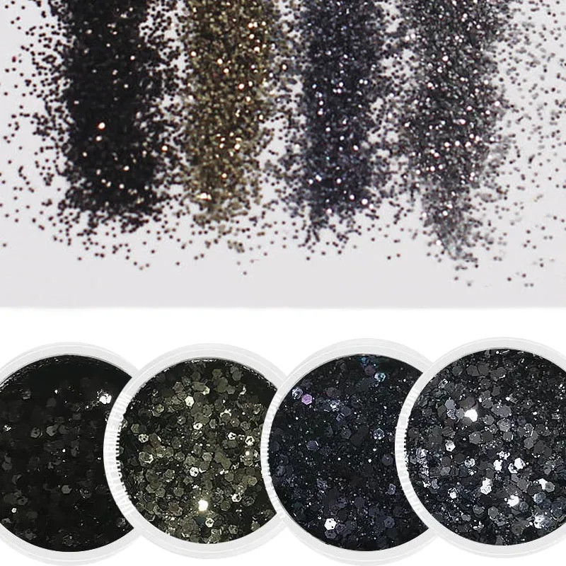 Addition Information of 4colors 10g/jar Iron Black Glitter Nail Set Nail Art Gradient Glitter Powder Dust Ultra-fine Acrylic Glitter Powder For Crafts