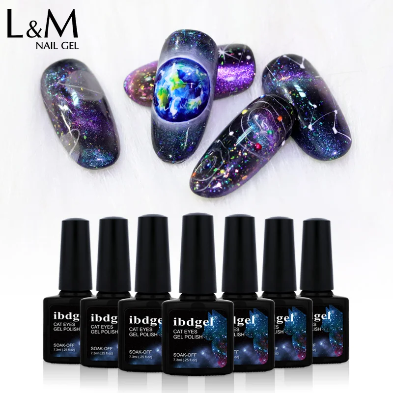 ibdgel New Arrival Galaxy Nail Gel Polish DIY Glitter Nail Art UV Led Galaxy Effect Cat Eyes Gel Lacquer 6 Colors